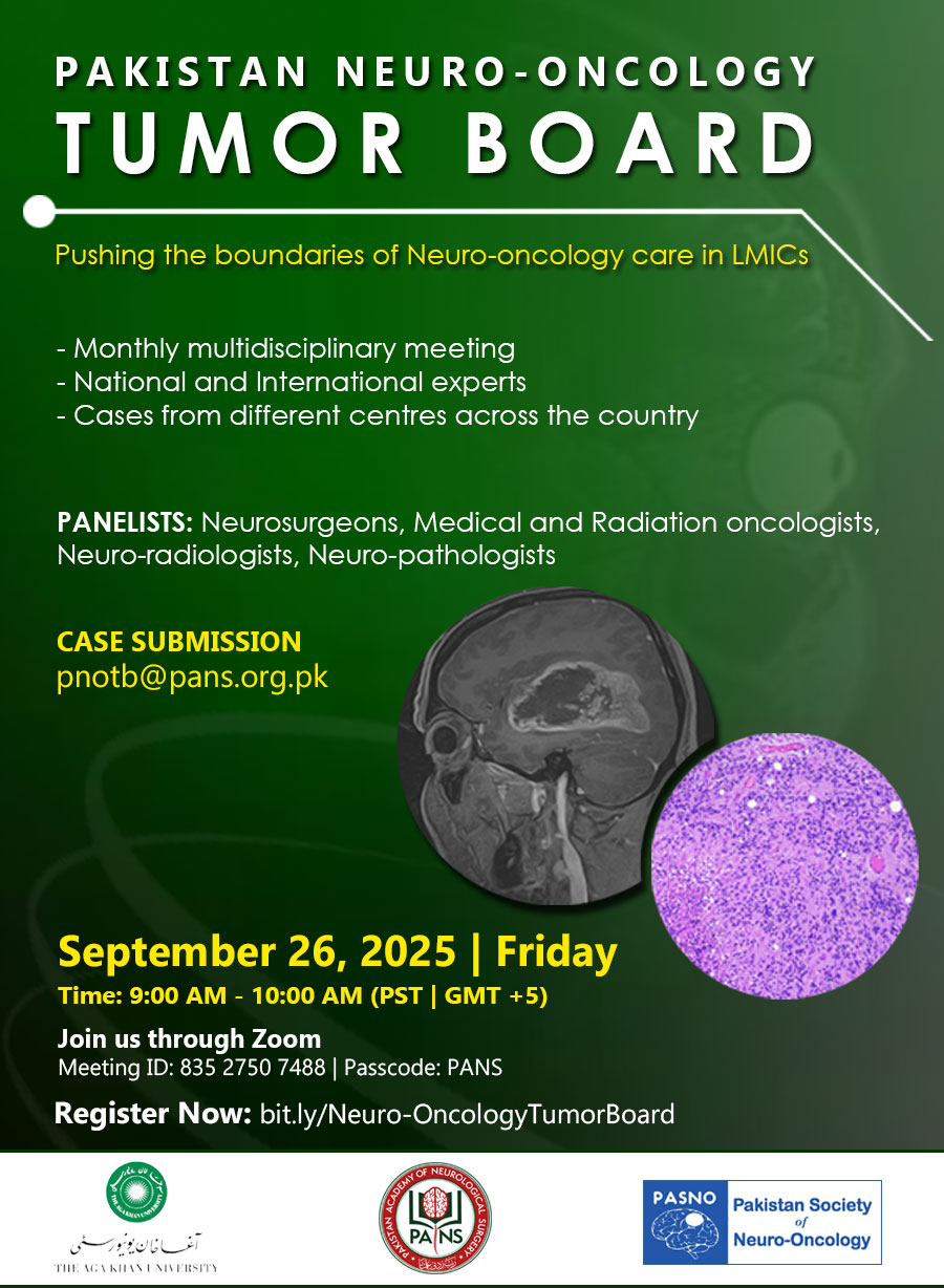 The Pakistan Neuro-Oncology Tumor Board (PNOTB) provides a collaborative platform where experts in neurosurgery, oncology, radiology, pathology, and related specialties review and discuss complex neuro-oncology cases.